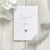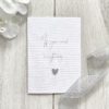 ◆ Printed in grey font and embellished with grey textured colour coordinating card heart on a raised pad with a little silver gem in the heart.