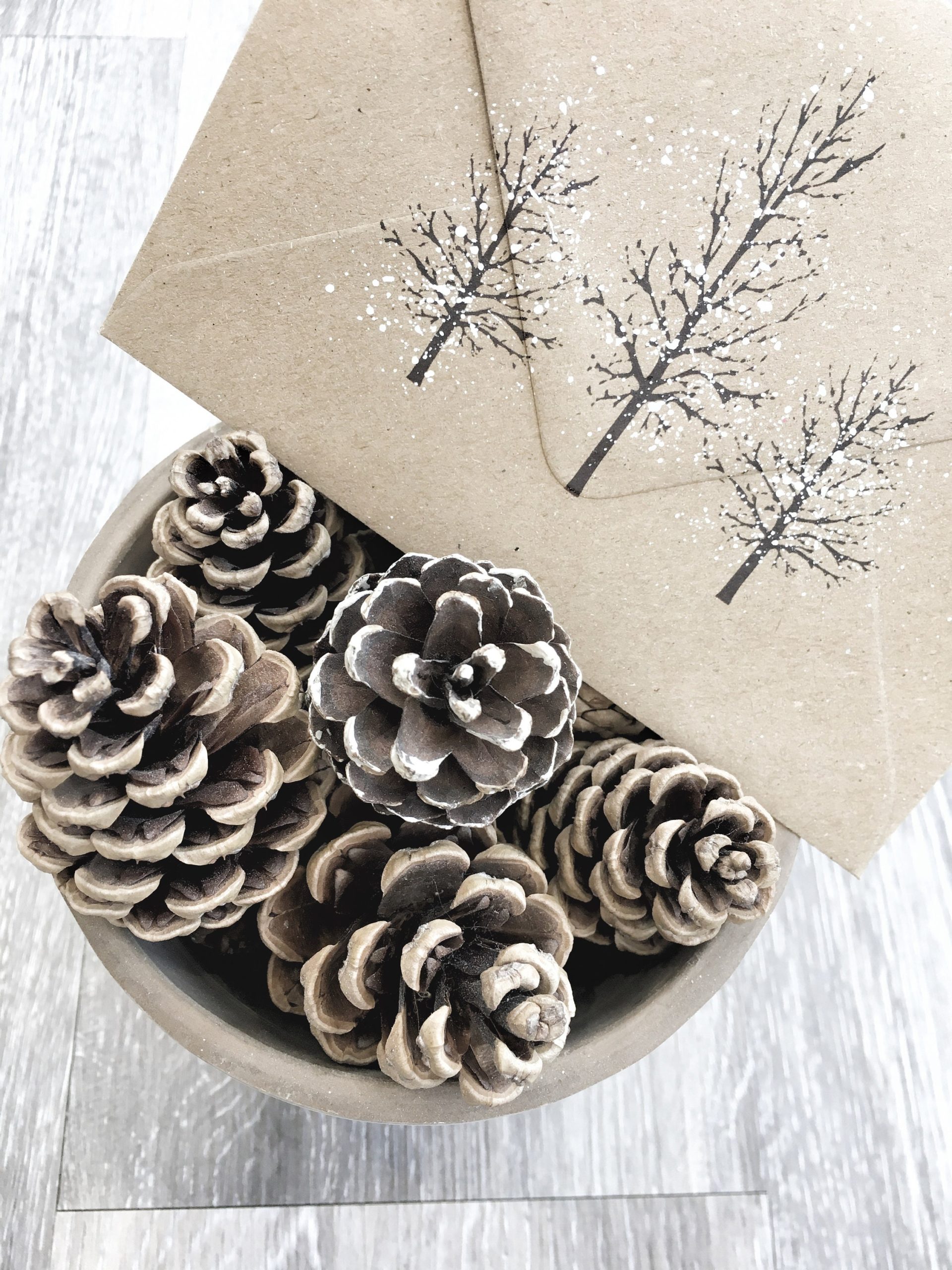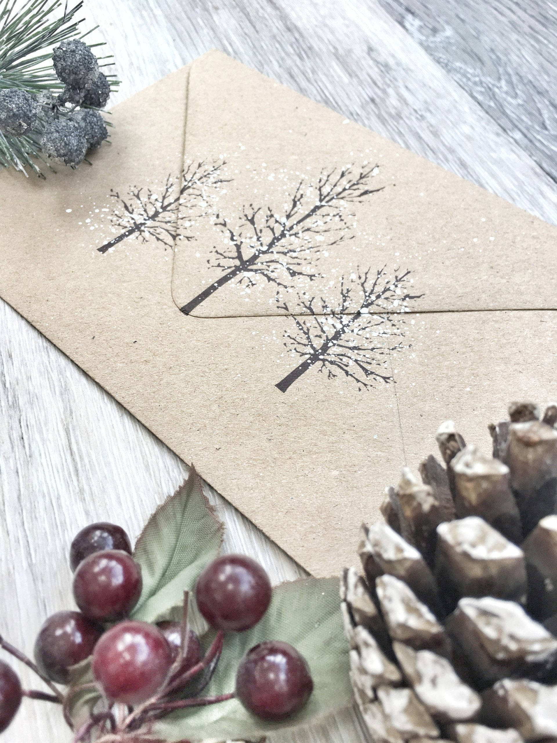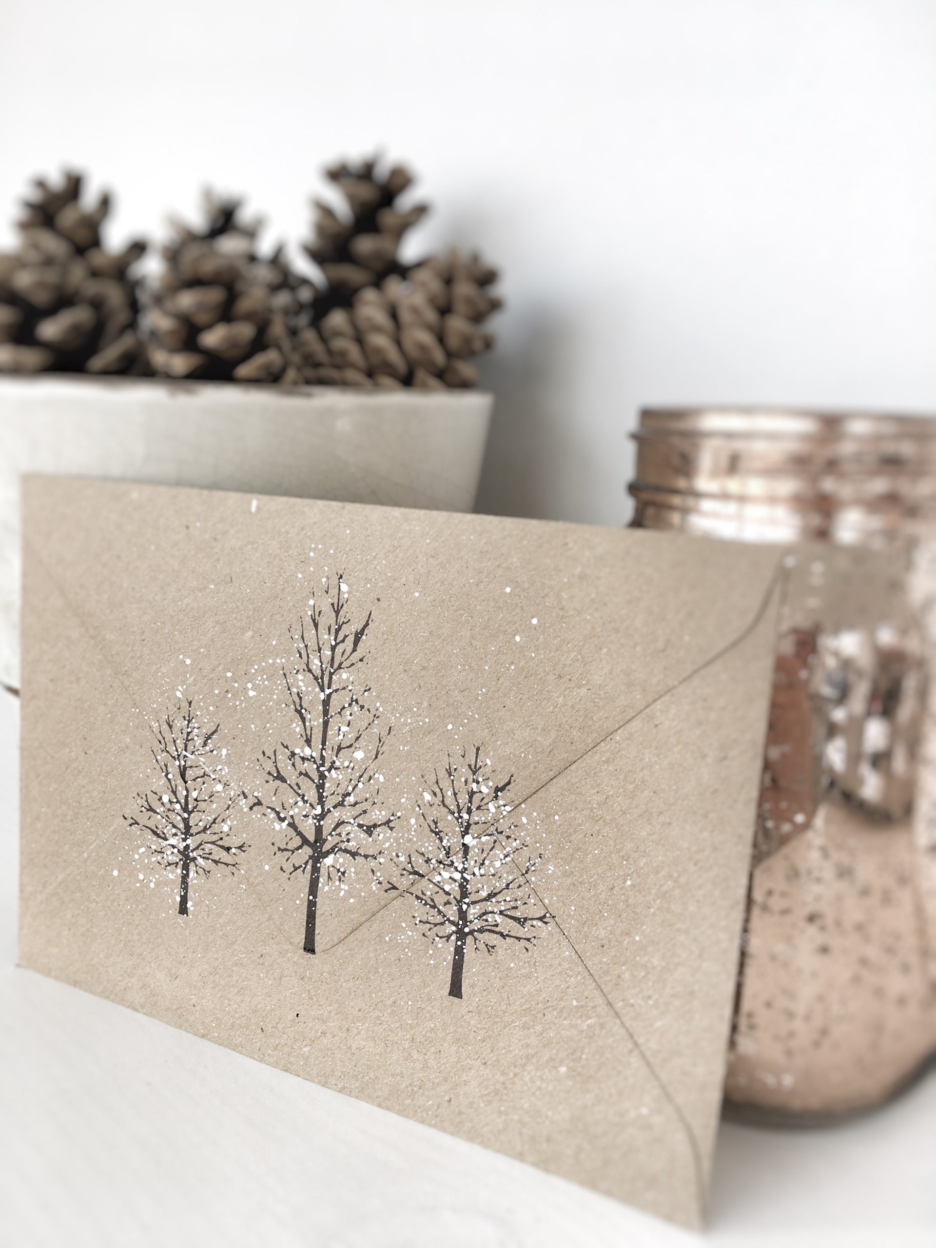 – Tree’s are all individually hand painted/snowed (there may be minor differences between each envelope due to this)