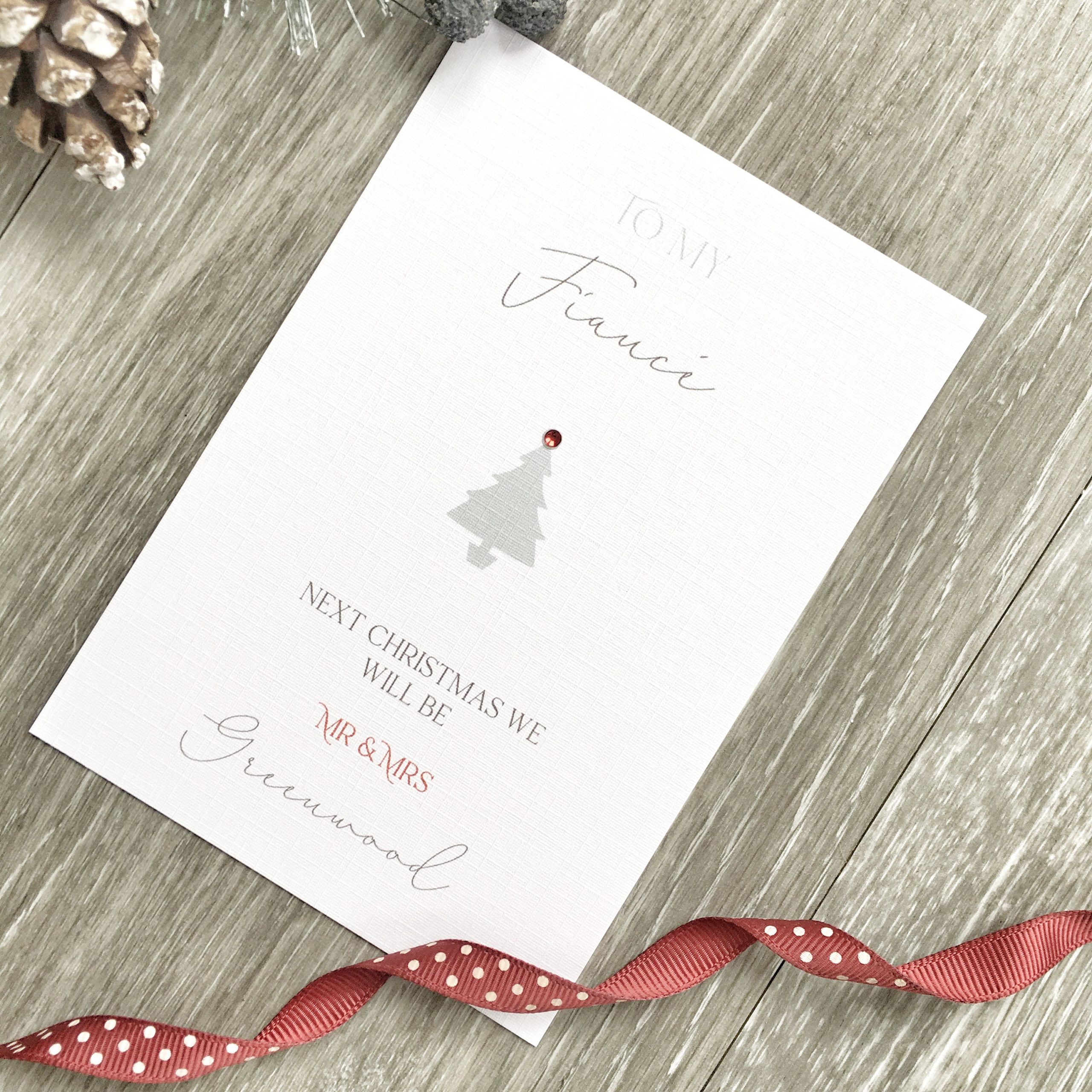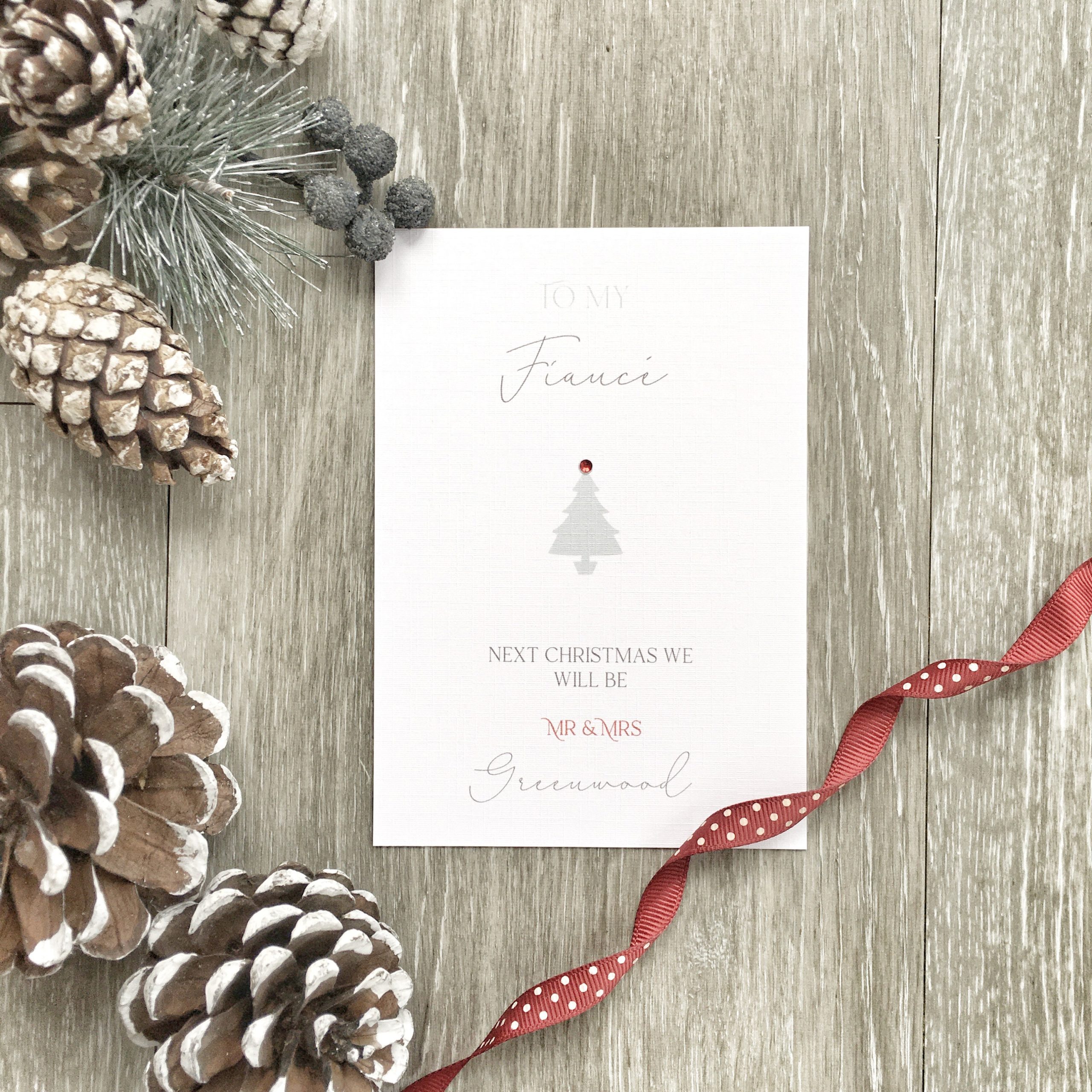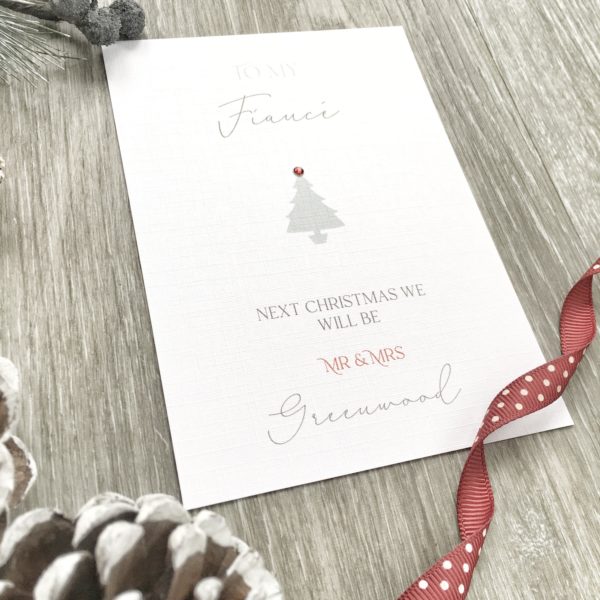 A beautifully personalised card to celebrate your last Christmas together before you are married!