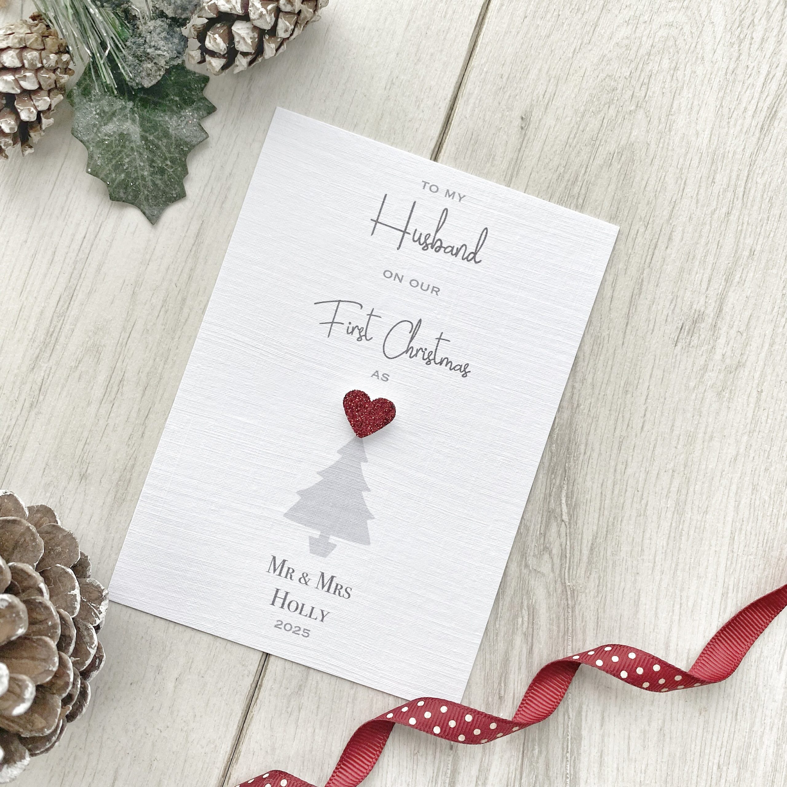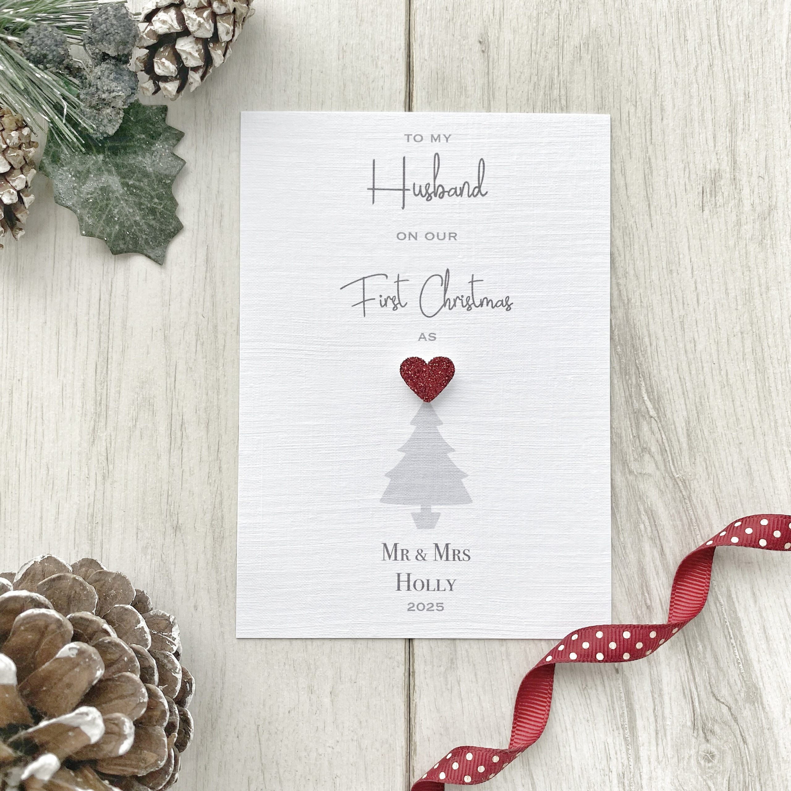 A beautifully personalised card to celebrate your First Married Christmas Together as Husband & Wife, Husband & Husband or Wife & Wife.