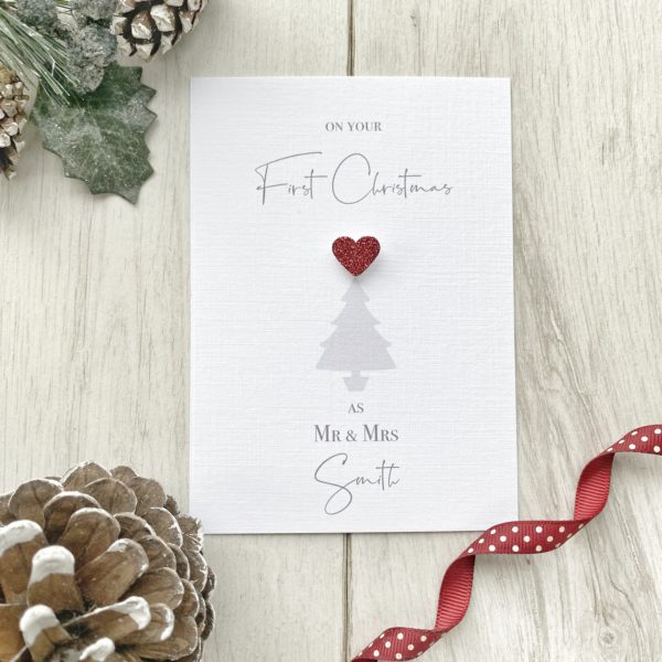 A beautifully personalised card to celebrate Their First Married Christmas Together as Husband & Wife, Husband & Husband or Wife & Wife!