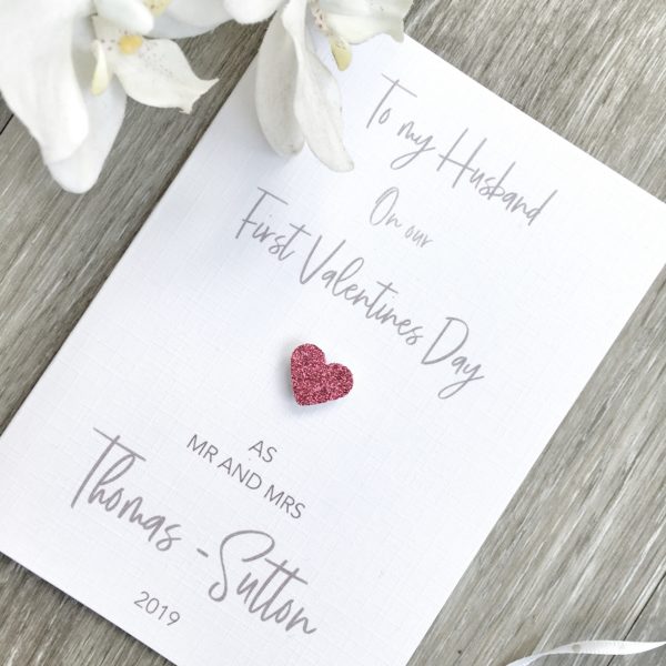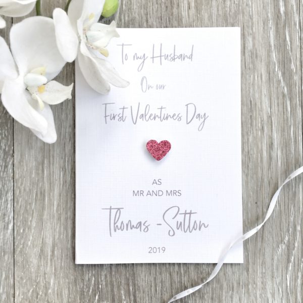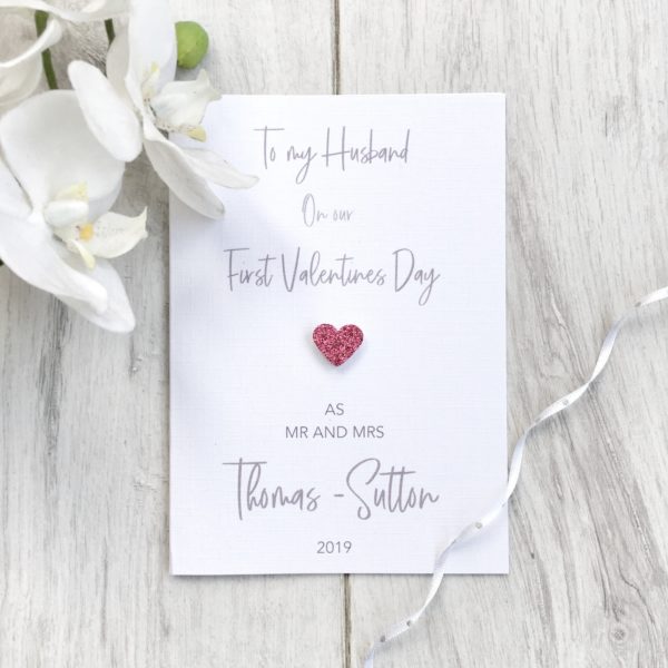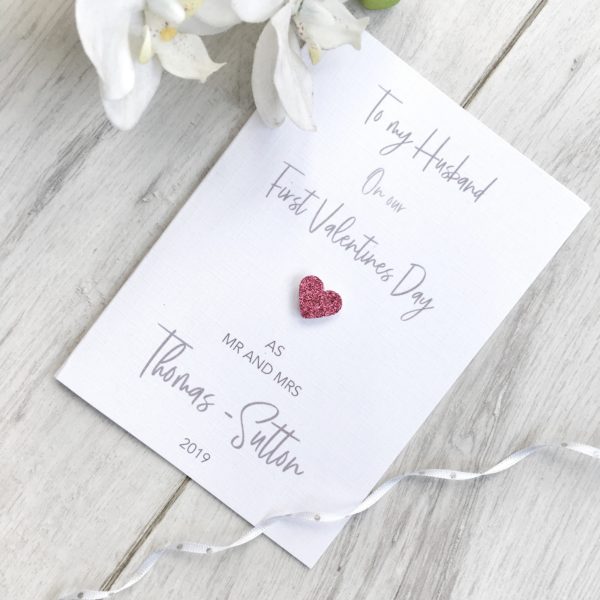 A personalised keepsake Valentine’s Day card to celebrate your First Valentine’s Together as a married couple.