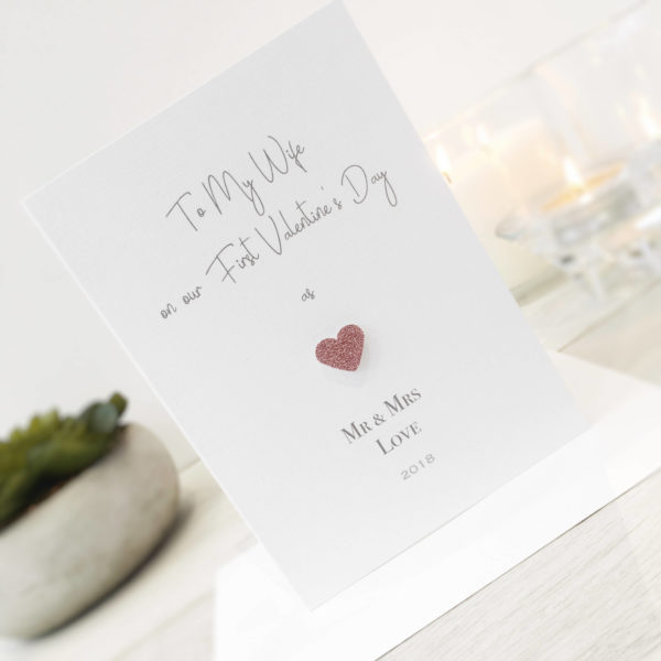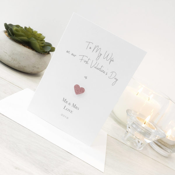 A unique personalised card to celebrate your First Valentine’s Together as a married couple