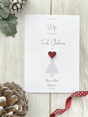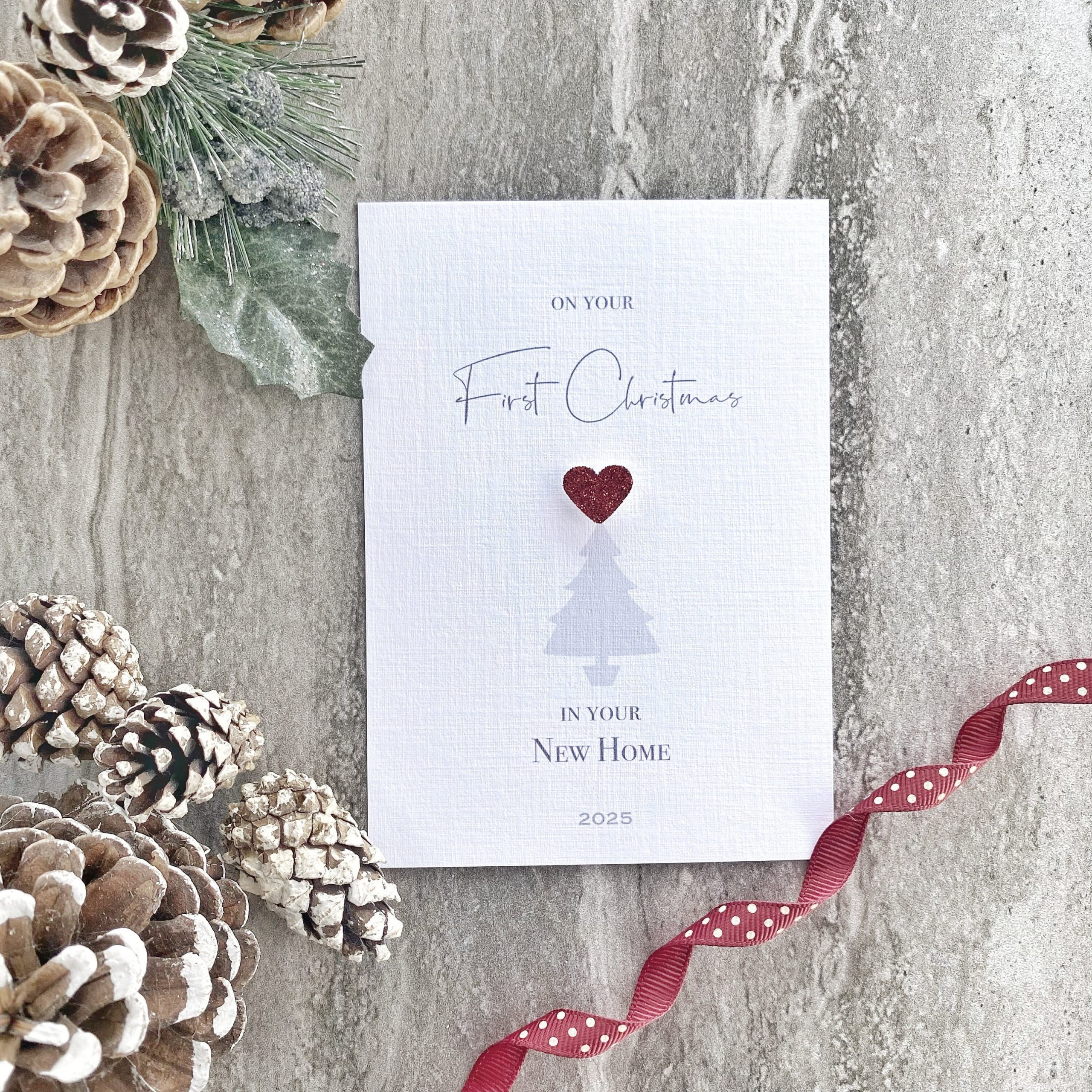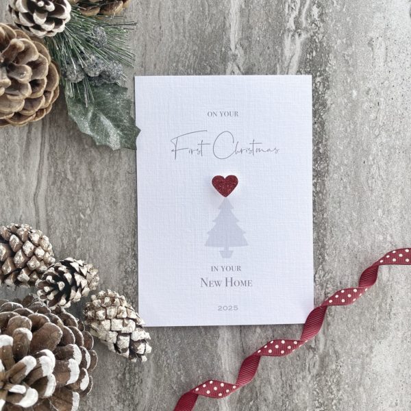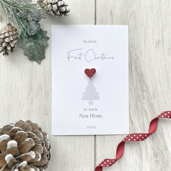 A beautifully personalised card to celebrate a First Christmas in a New Home.