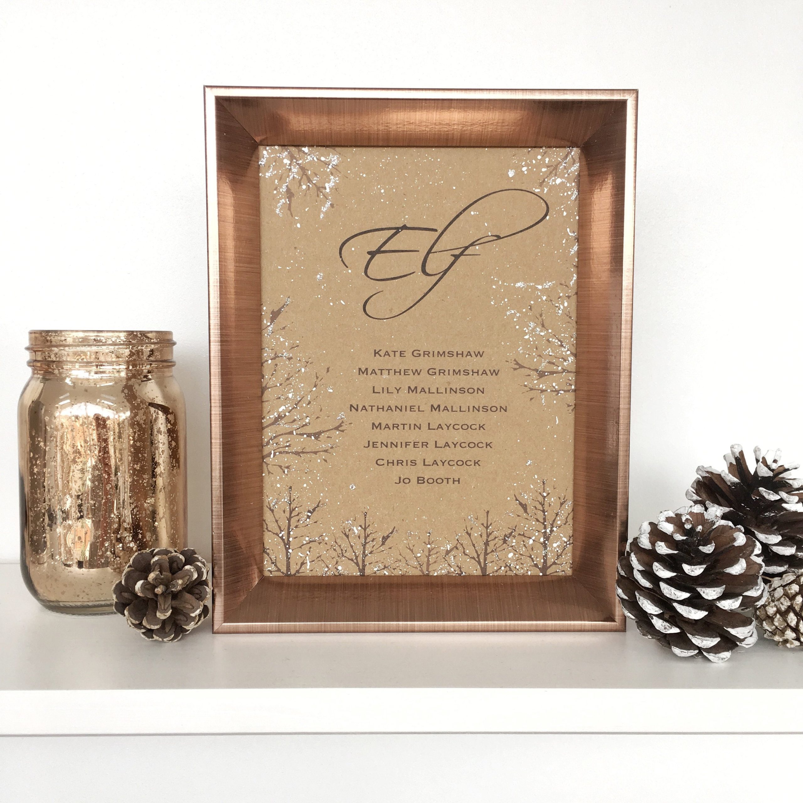 A Rustic Winter Wedding Table Name with Guests Names….a beautiful addition to our Rustic Winter Wedding Invitation Suite that compliments a Winter Wedding Theme perfectly.