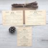 This sample is NOT personalised and includes Invitation, RSVP, Wedding Information and envelope hand tied with 2 ply twine with luggage style tag in Kraft card (that would have your names & date of wedding).