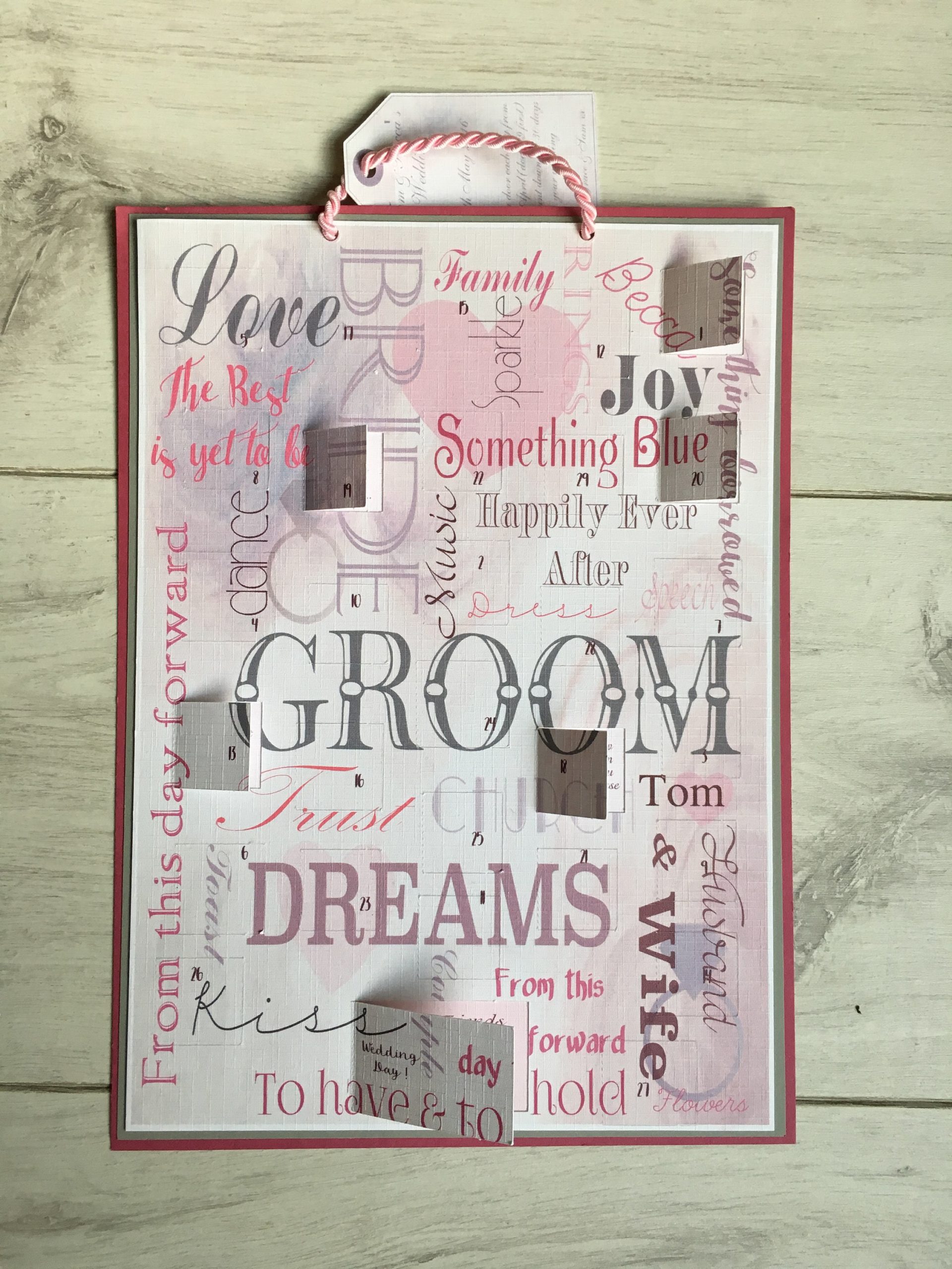 A Wedding Advent Calendar to countdown to the days to the Brides Wedding Day with a truly unique Wedding Gift to a bride…a personalised handmade gift of a Wedding Countdown Advent Calendar