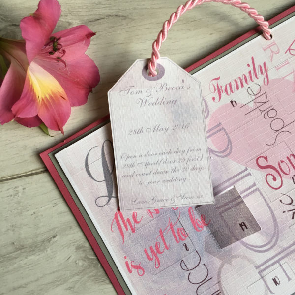 Our Wedding Advent Calendar is a truly unique way for the blushing bride to have a wedding countdown to her big day in a personalised way with 30 days and 30 unique & different little messages & quotes for her to read each day.