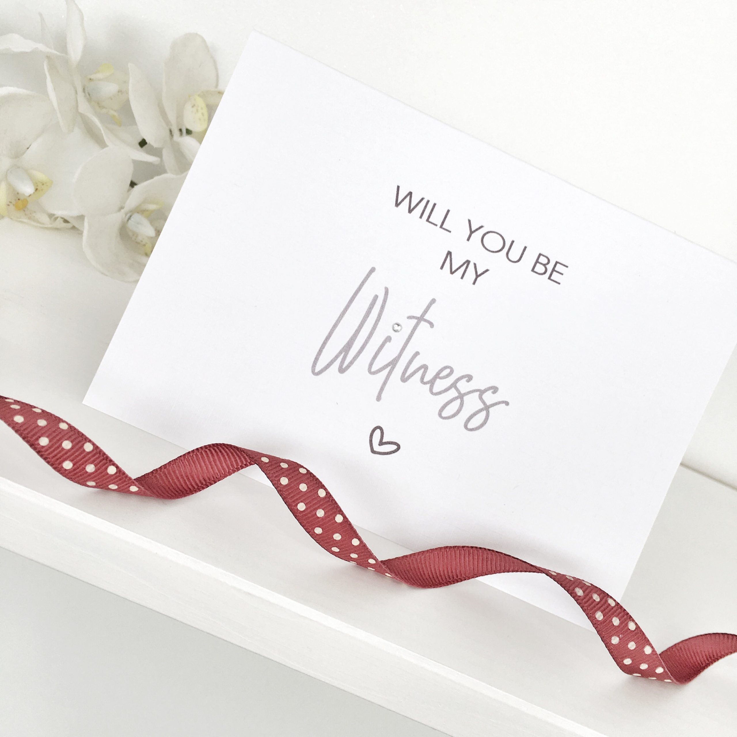 A novel and unique way to ask that special person to play that important role on your wedding day and be your Witness.